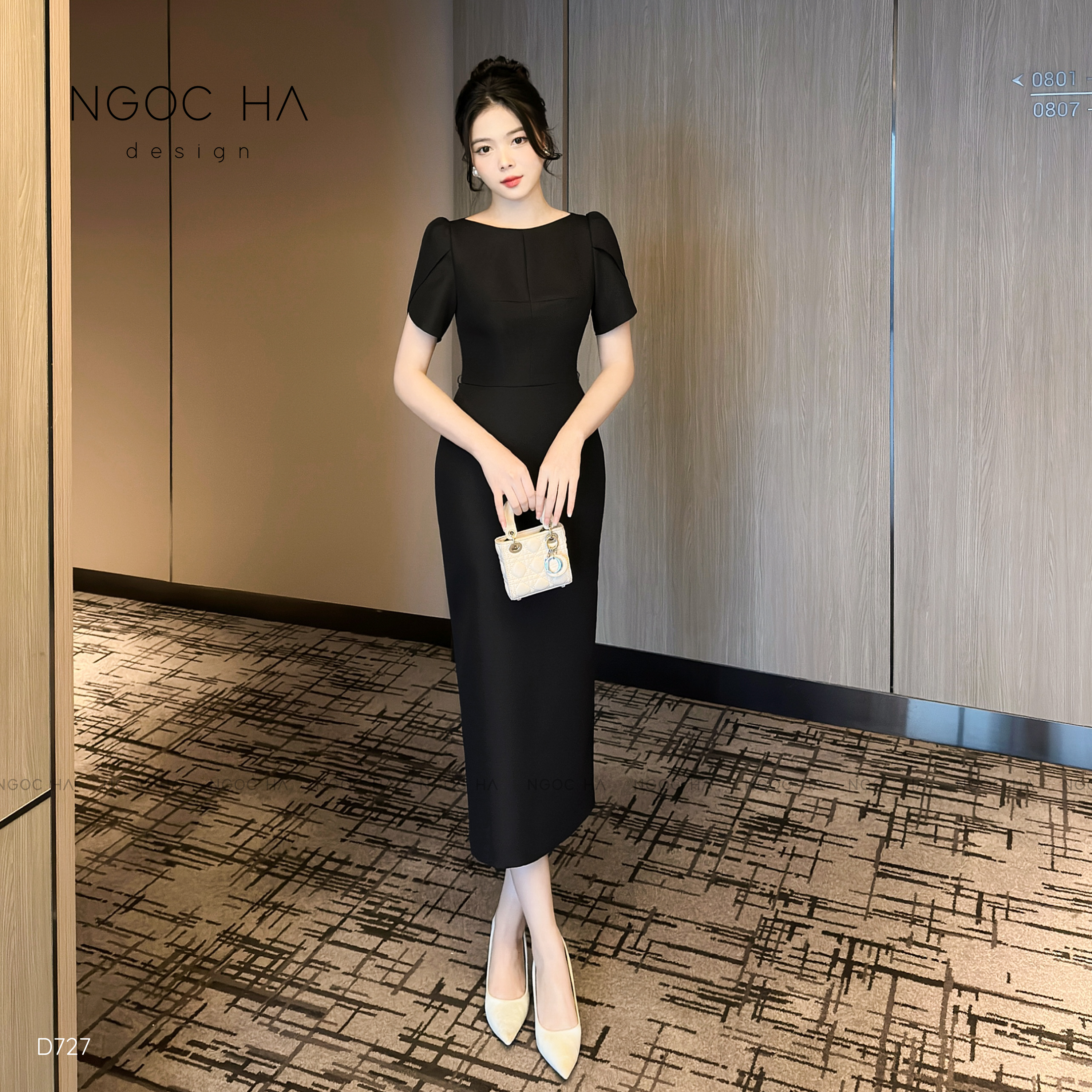 Alice Dress_Đầm bút chì ,tay nụ hồng ,bồng đầu tay màu đen D727