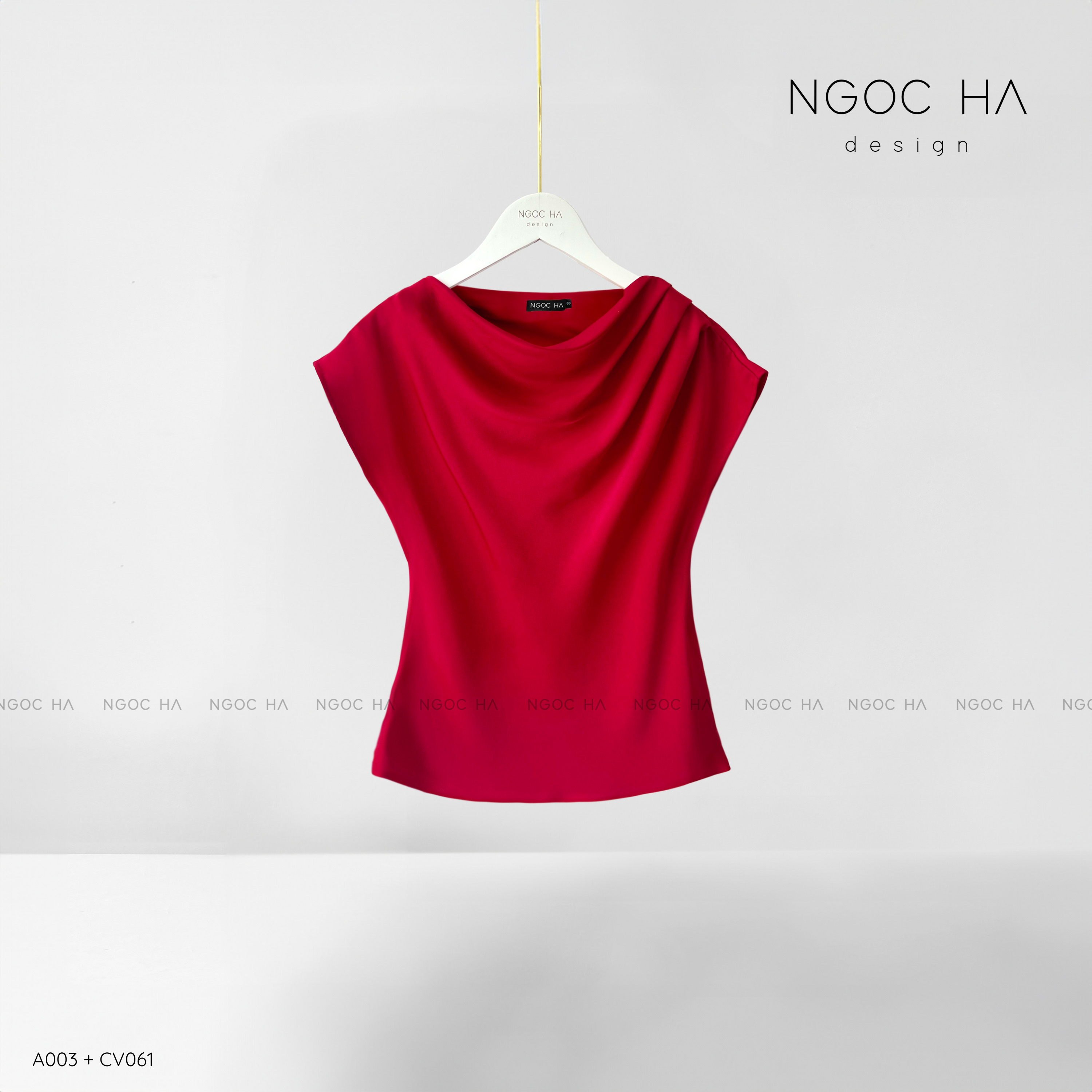 Mely Top_ Áo Lụa Cổ Đổ Rớt Vai A003